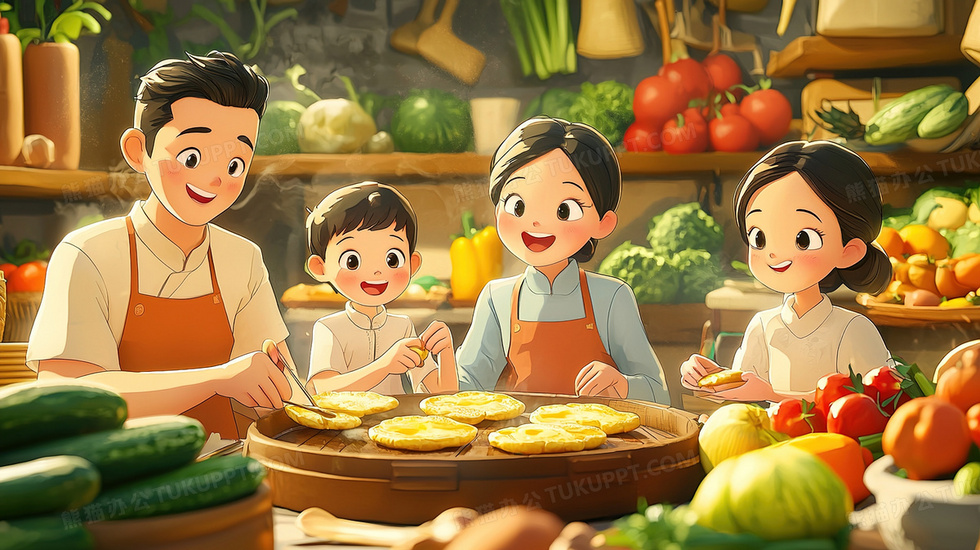本作品内容为厨房忙碌做美食的一家人幸福插画, 格式为 jpg, 大小3 MB, 图片尺寸为2912 x 1632, 源文件无水印, 欢迎使用熊猫办公。 如认为平台内容涉嫌侵权,可通过邮件:tousu@tukuppt.com提出书面通知,我们将及时处理。