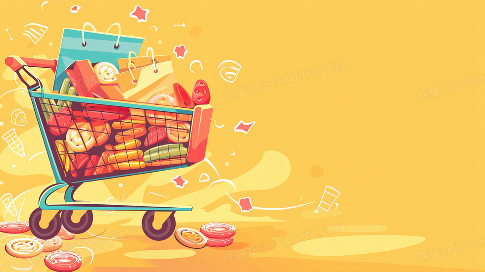本作品内容为卡通购物车电商促销宣传消费背景, 格式为 jpg, 大小2 MB, 图片尺寸为2912 x 1632, 作品中背景图片无需修改, 源文件无水印,可以直接使用, 欢迎使用熊猫办公。 如认为平台内容涉嫌侵权,可通过邮件:tousu@tukuppt.com提出书面通知,我们将及时处理。