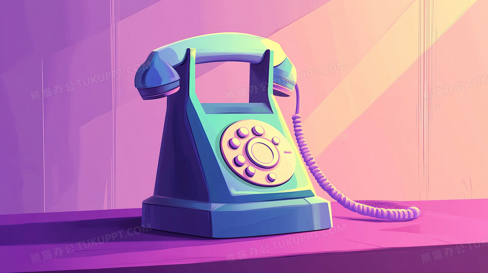 本作品内容为一个老式转盘拨号电话机插画, 格式为 jpg, 大小2 MB, 图片尺寸为2912 x 1632, 源文件无水印, 欢迎使用熊猫办公。 如认为平台内容涉嫌侵权,可通过邮件:tousu@tukuppt.com提出书面通知,我们将及时处理。