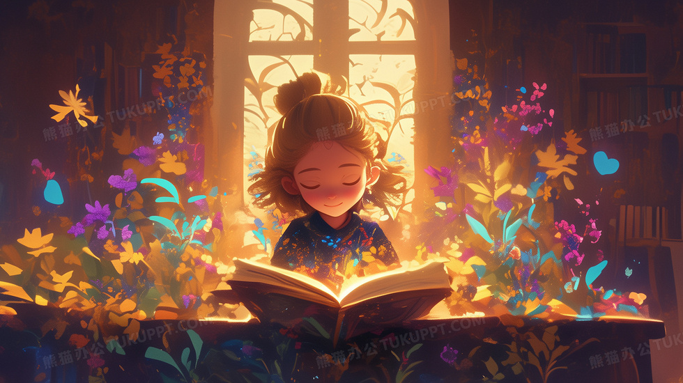 本作品内容为小女孩沉静在奇幻花草书本世界中创意插画, 格式为 jpg, 大小7 MB, 图片尺寸为2912 x 1632, 源文件无水印, 欢迎使用熊猫办公。 如认为平台内容涉嫌侵权,可通过邮件:tousu@tukuppt.com提出书面通知,我们将及时处理。