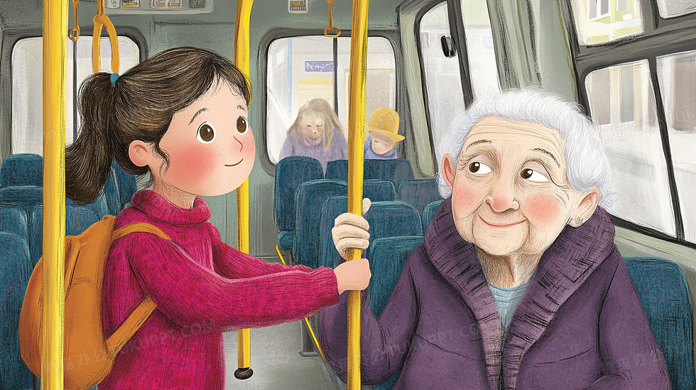 首页 > 插画 > 科技艺术 > 水彩手绘 > 女孩公交车上帮助老人爱心公益插画