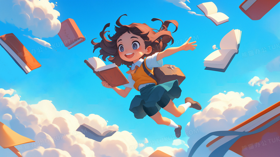 本作品内容为女孩飞翔在知识的海洋中卡通人物创意插画, 格式为 jpg, 大小6 MB, 图片尺寸为2912 x 1632, 源文件无水印, 欢迎使用熊猫办公。 如认为平台内容涉嫌侵权,可通过邮件:tousu@tukuppt.com提出书面通知,我们将及时处理。