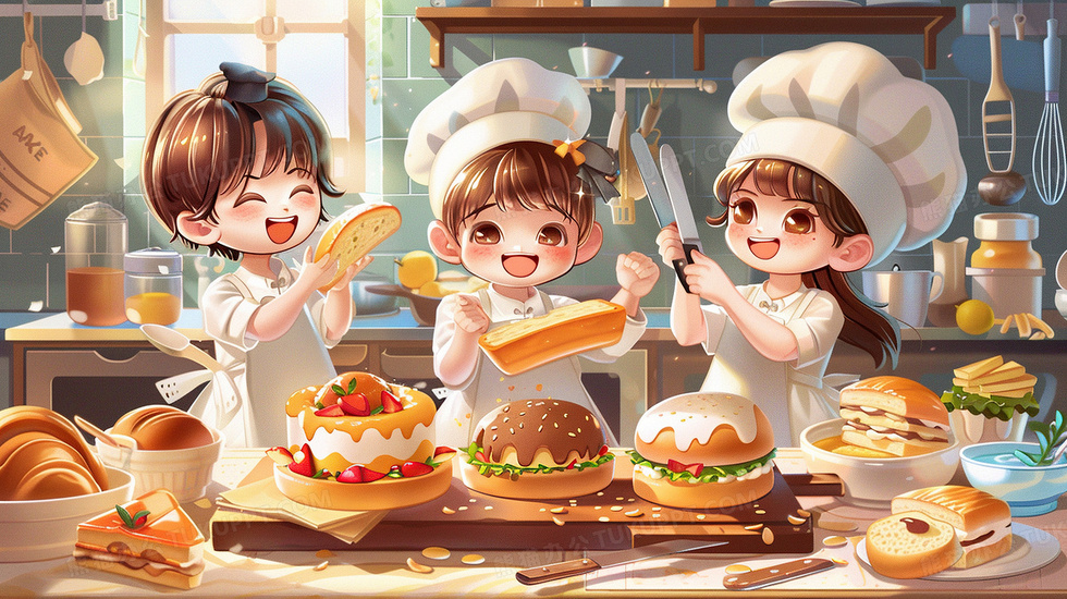 本作品内容为厨房厨师烘焙美食面包插画, 格式为 jpg, 大小4 MB, 图片尺寸为2912 x 1632, 源文件无水印, 欢迎使用熊猫办公。 如认为平台内容涉嫌侵权,可通过邮件:tousu@tukuppt.com提出书面通知,我们将及时处理。