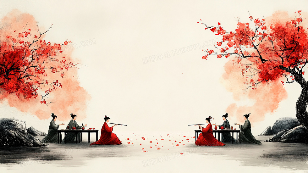 本作品内容为水墨风在花下作曲的古代文人背景, 格式为 jpg, 大小3 MB, 图片尺寸为2912 x 1632, 作品中背景图片无需修改, 源文件无水印,可以直接使用, 欢迎使用熊猫办公。 如认为平台内容涉嫌侵权,可通过邮件:tousu@tukuppt.com提出书面通知,我们将及时处理。