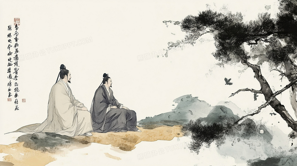 本作品内容为水墨中国风人物山水典故背景, 格式为 jpg, 大小3 MB, 图片尺寸为2912 x 1632, 作品中背景图片无需修改, 源文件无水印,可以直接使用, 欢迎使用熊猫办公。 如认为平台内容涉嫌侵权,可通过邮件:tousu@tukuppt.com提出书面通知,我们将及时处理。