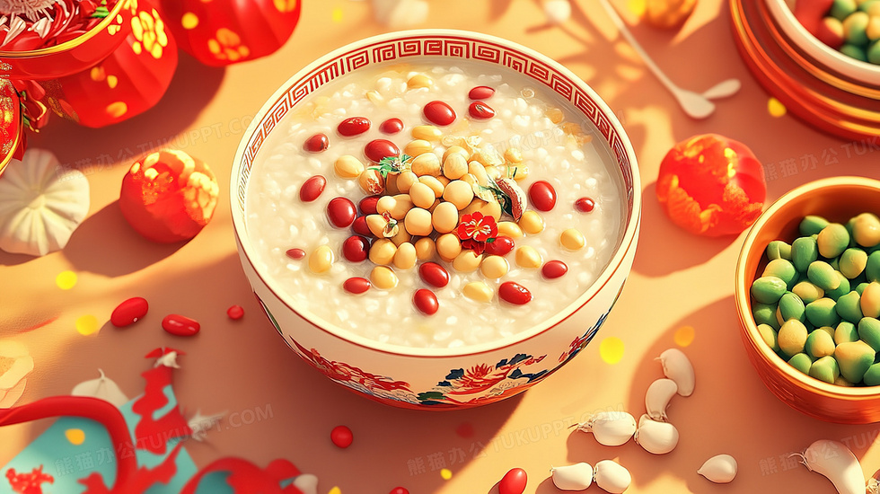 本作品内容为桌面美食腊八粥喜庆灯笼插画, 格式为 jpg, 大小3 MB, 图片尺寸为2912 x 1632, 源文件无水印, 欢迎使用熊猫办公。 如认为平台内容涉嫌侵权,可通过邮件:tousu@tukuppt.com提出书面通知,我们将及时处理。