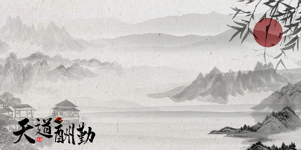 本作品内容为简约国风天道酬勤背景, 格式为 psd, 大小82 MB, 图片尺寸为4724 x 2362, 作品中背景图片无需修改, 源文件无水印,可以直接使用, 欢迎使用熊猫办公。 如认为平台内容涉嫌侵权,可通过邮件:tousu@tukuppt.com提出书面通知,我们将及时处理。