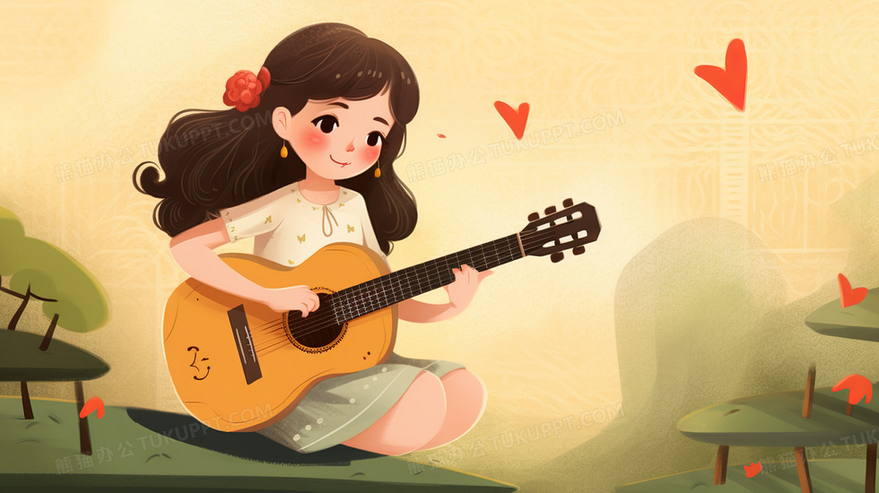 本作品内容为坐在户外弹吉他的女孩插画, 格式为 jpg, 大小5 MB, 图片尺寸为2912 x 1632, 源文件无水印, 欢迎使用熊猫办公。 如认为平台内容涉嫌侵权,可通过邮件:tousu@tukuppt.com提出书面通知,我们将及时处理。
