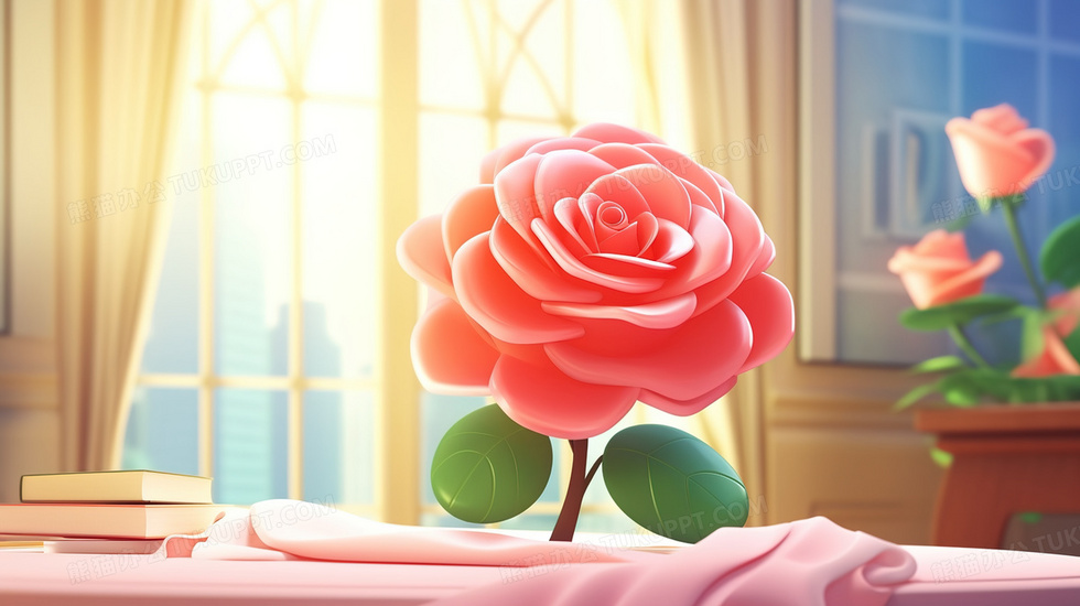本作品内容为桌子上的一朵红玫瑰装饰插画, 格式为 jpg, 大小4 MB, 图片尺寸为2912 x 1632, 源文件无水印, 欢迎使用熊猫办公。 如认为平台内容涉嫌侵权,可通过邮件:tousu@tukuppt.com提出书面通知,我们将及时处理。