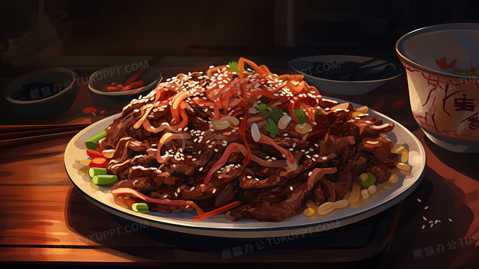 本作品内容为美味佳肴美食炒菜食物插画, 格式为 jpg, 大小5 MB, 图片尺寸为2912 x 1632, 源文件无水印, 欢迎使用熊猫办公。 如认为平台内容涉嫌侵权,可通过邮件:tousu@tukuppt.com提出书面通知,我们将及时处理。