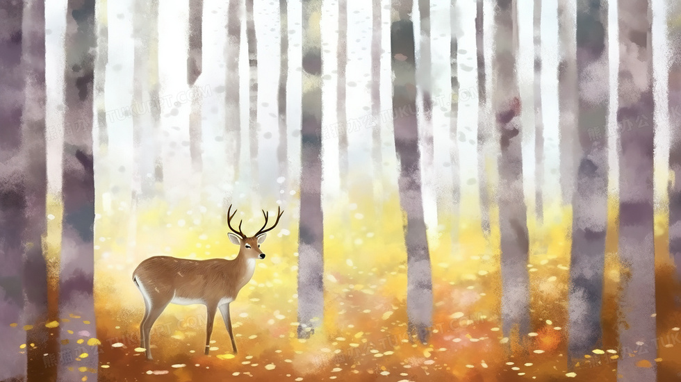 本作品内容为唯美金色森林深处的麋鹿插画, 格式为 jpg, 大小7 MB, 图片尺寸为2912 x 1632, 源文件无水印, 欢迎使用熊猫办公。 如认为平台内容涉嫌侵权,可通过邮件:tousu@tukuppt.com提出书面通知,我们将及时处理。
