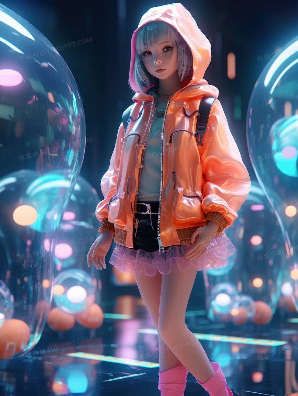 本作品内容为粉色系3D立体时尚卡通小女孩人物插画, 格式为 jpg, 大小5 MB, 图片尺寸为1856 x 2464, 源文件无水印, 欢迎使用熊猫办公。 如认为平台内容涉嫌侵权,可通过邮件:tousu@tukuppt.com提出书面通知,我们将及时处理。