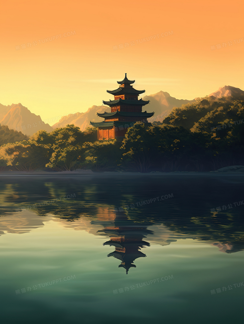 本作品内容为中国风唯美水中倒影古建筑风景插画, 格式为 jpg, 大小5 MB, 图片尺寸为1856 x 2464, 源文件无水印, 欢迎使用熊猫办公。 如认为平台内容涉嫌侵权,可通过邮件:tousu@tukuppt.com提出书面通知,我们将及时处理。