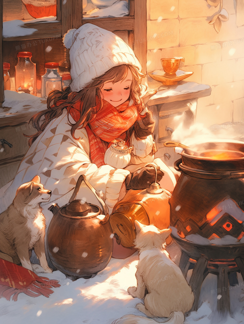 本作品内容为冬日在火炉旁取暖的小女孩和狗狗们插画, 格式为 jpg, 大小6 MB, 图片尺寸为1856 x 2464, 源文件无水印, 欢迎使用熊猫办公。 如认为平台内容涉嫌侵权,可通过邮件:tousu@tukuppt.com提出书面通知,我们将及时处理。
