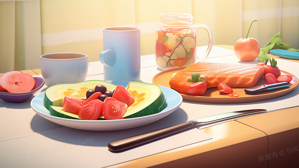 本作品内容为丰盛精致的水果蔬菜肉类饮料食物插画, 格式为 jpg, 大小5 MB, 图片尺寸为2912 x 1632, 源文件无水印, 欢迎使用熊猫办公。 如认为平台内容涉嫌侵权,可通过邮件:tousu@tukuppt.com提出书面通知,我们将及时处理。