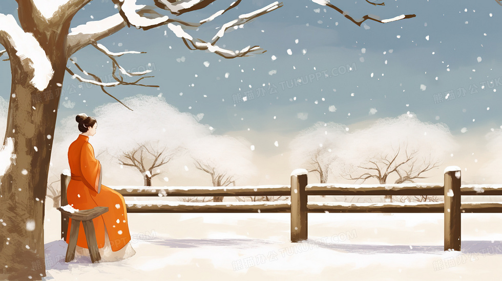 本作品内容为冬季木护栏旁坐着的古风人物插画, 格式为 jpg, 大小5 MB, 图片尺寸为2912 x 1632, 源文件无水印, 欢迎使用熊猫办公。 如认为平台内容涉嫌侵权,可通过邮件:tousu@tukuppt.com提出书面通知,我们将及时处理。