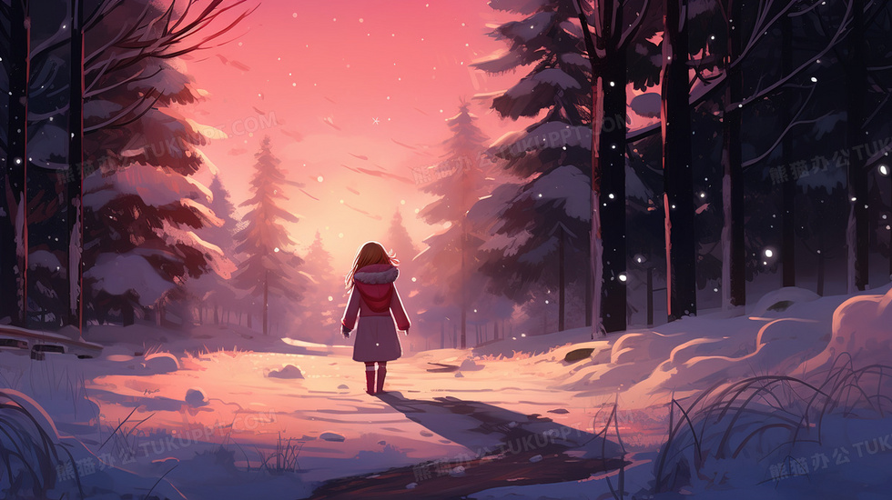 本作品内容为冬季黄昏天空渐暗穿过森林的女孩插画, 格式为 jpg, 大小5 MB, 图片尺寸为2912 x 1632, 源文件无水印, 欢迎使用熊猫办公。 如认为平台内容涉嫌侵权,可通过邮件:tousu@tukuppt.com提出书面通知,我们将及时处理。