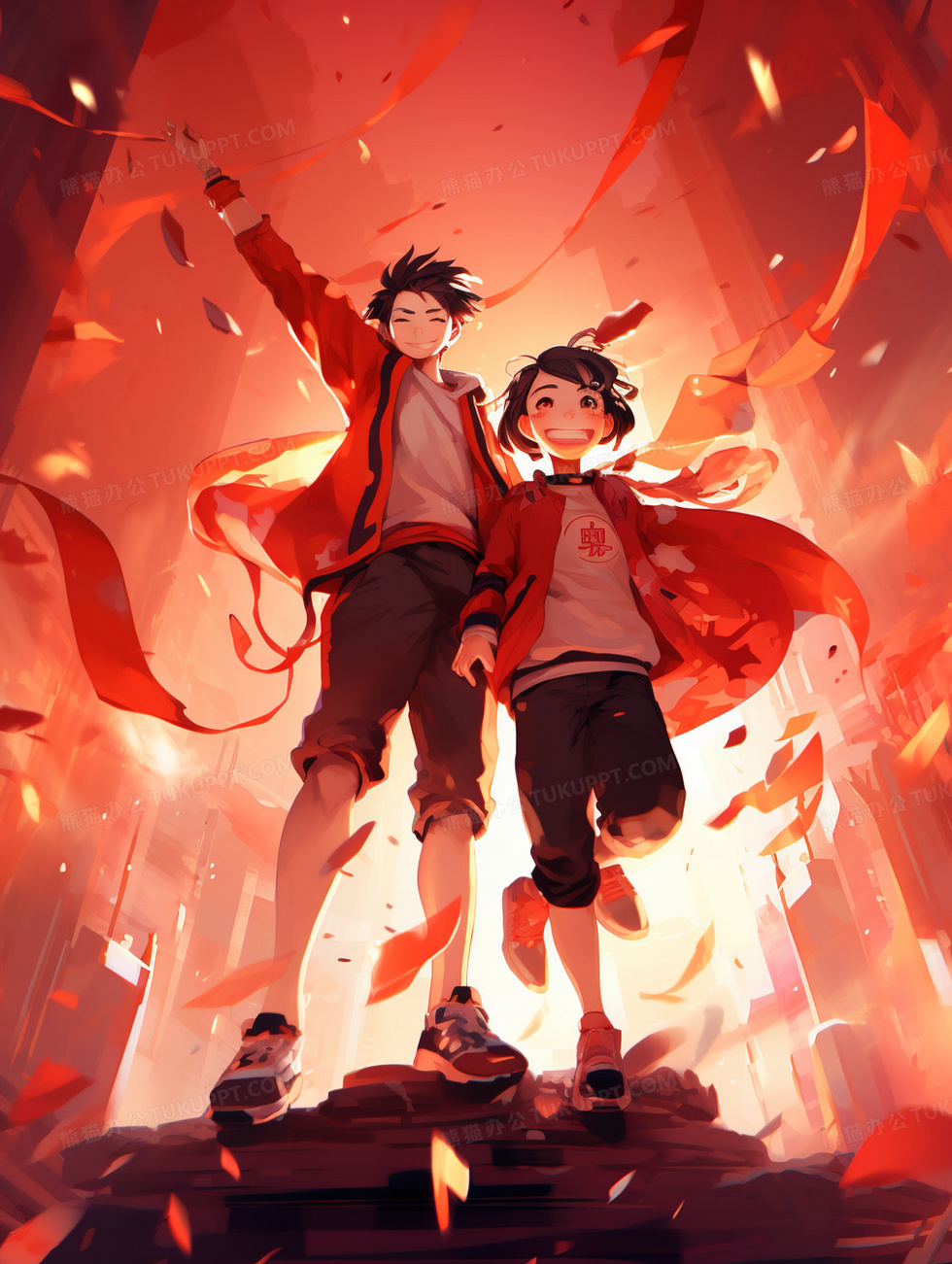 本作品内容为红色衣服卡通人物节日庆祝插画, 格式为 jpg, 大小4 MB, 图片尺寸为1856 x 2464, 源文件无水印, 欢迎使用熊猫办公。 如认为平台内容涉嫌侵权,可通过邮件:tousu@tukuppt.com提出书面通知,我们将及时处理。