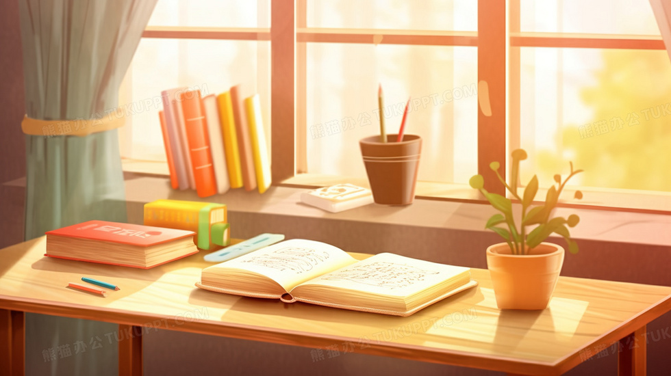 本作品内容为阳光洒满书桌插画, 格式为 jpg, 大小4 MB, 图片尺寸为2912 x 1632, 源文件无水印, 欢迎使用熊猫办公。 如认为平台内容涉嫌侵权,可通过邮件:tousu@tukuppt.com提出书面通知,我们将及时处理。