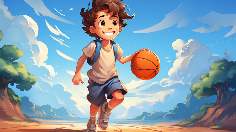 本作品内容为可爱卡通男孩开心的打篮球创意插画, 格式为 jpg, 大小6 MB, 图片尺寸为2912 x 1632, 源文件无水印, 欢迎使用熊猫办公。 如认为平台内容涉嫌侵权,可通过邮件:tousu@tukuppt.com提出书面通知,我们将及时处理。