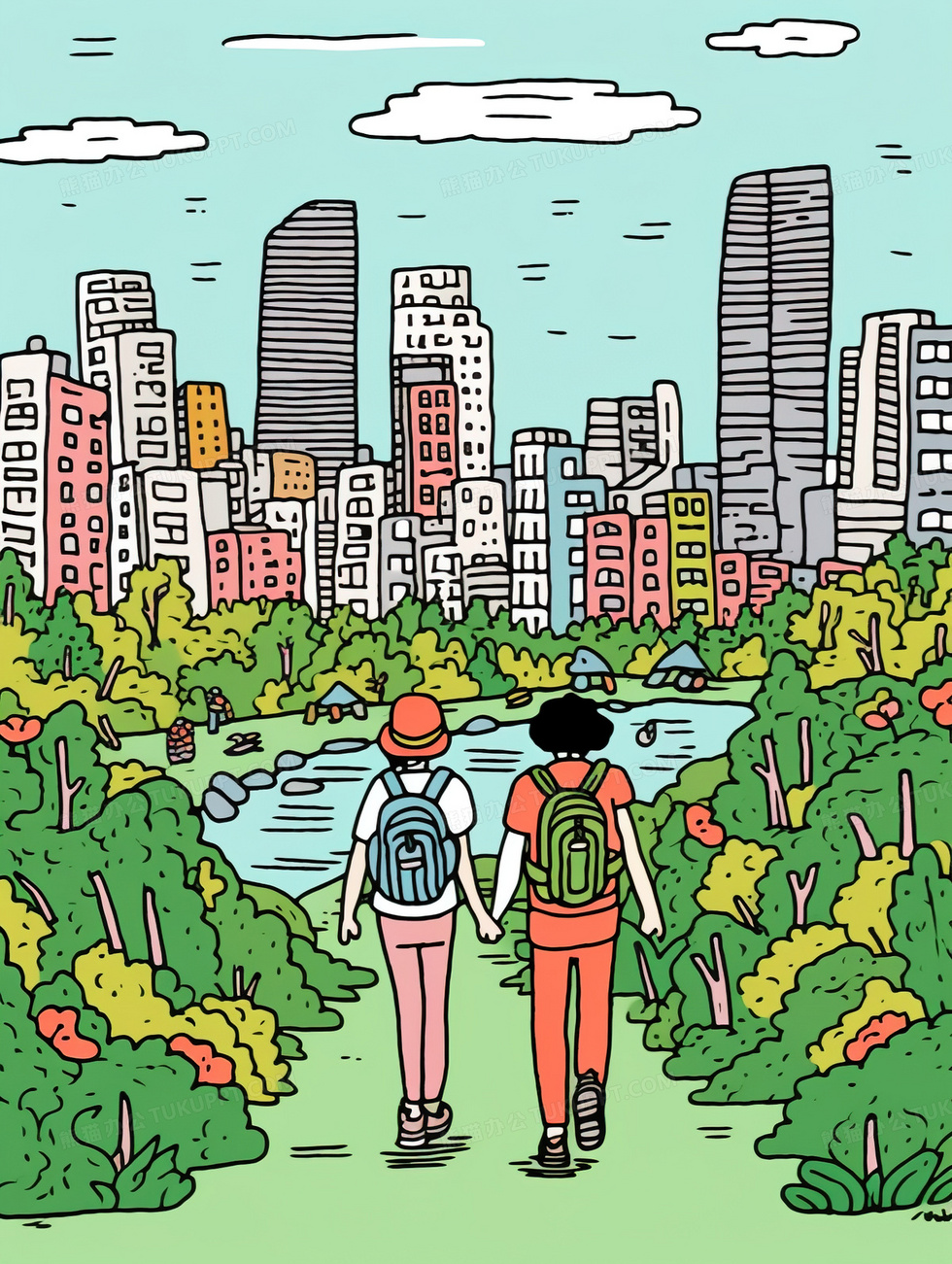 本作品内容为在春天一起户外徒步的朋友插画, 格式为 jpg, 大小6 MB, 图片尺寸为1856 x 2464, 源文件无水印, 欢迎使用熊猫办公。 如认为平台内容涉嫌侵权,可通过邮件:tousu@tukuppt.com提出书面通知,我们将及时处理。