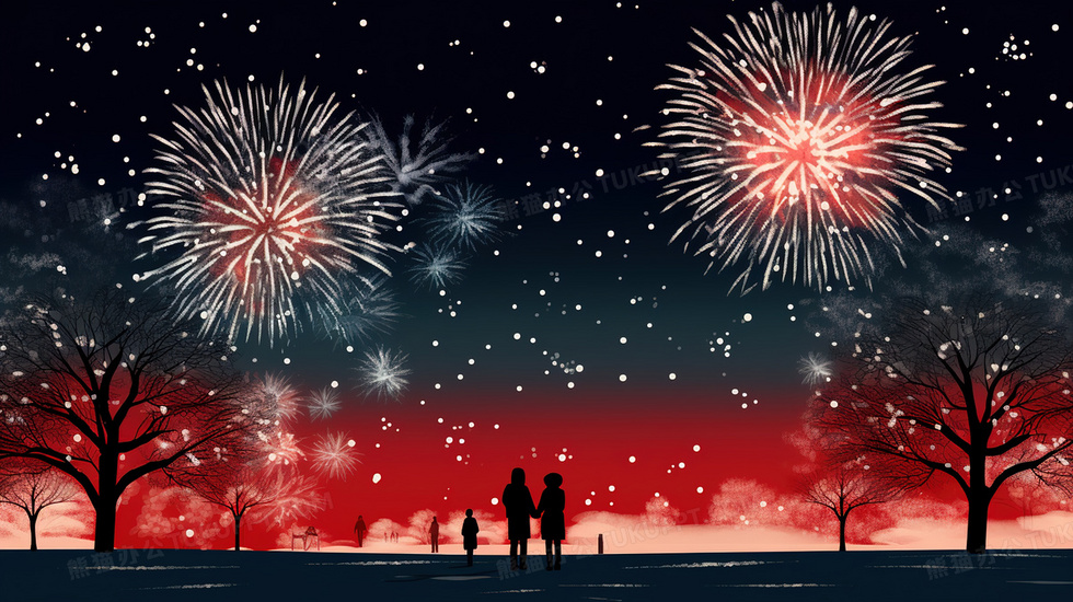 本作品内容为唯美春节节日烟花插画, 格式为 jpg, 大小7 MB, 图片尺寸为2912 x 1632, 源文件无水印, 欢迎使用熊猫办公。 如认为平台内容涉嫌侵权,可通过邮件:tousu@tukuppt.com提出书面通知,我们将及时处理。