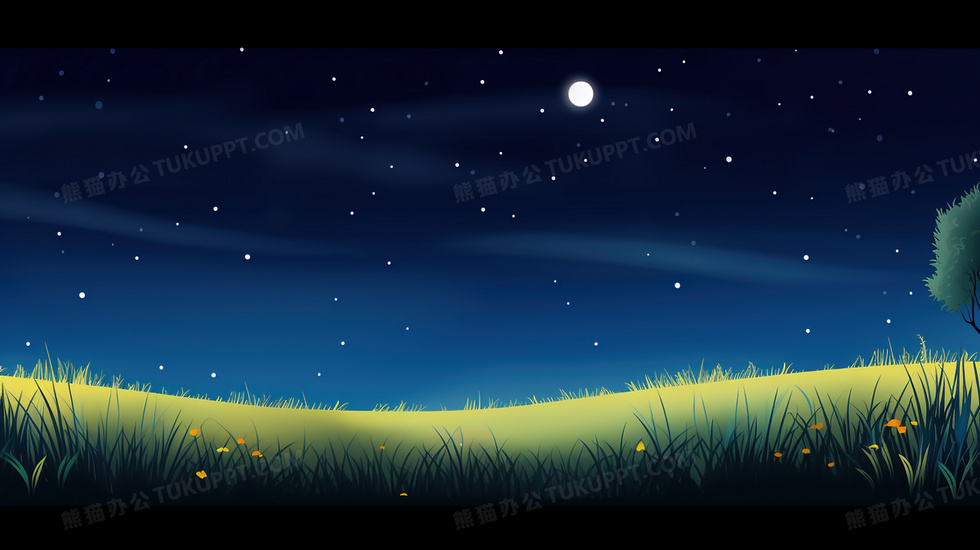 本作品内容为唯美夏日夜晚风景插画, 格式为 jpg, 大小4 MB, 图片尺寸为2912 x 1632, 源文件无水印, 欢迎使用熊猫办公。 如认为平台内容涉嫌侵权,可通过邮件:tousu@tukuppt.com提出书面通知,我们将及时处理。