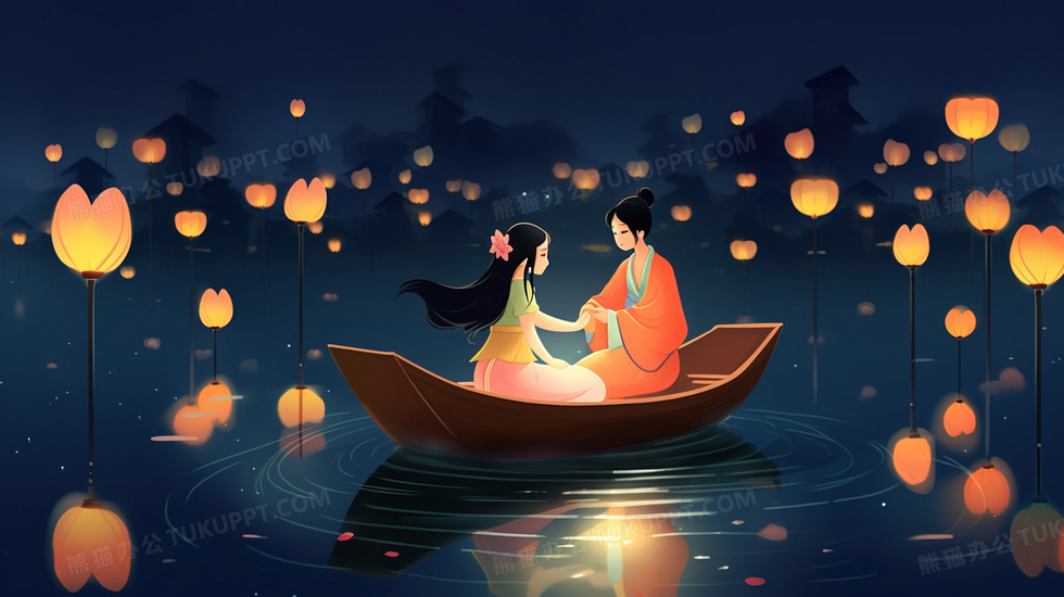 本作品内容为小船上放花灯的少女祈福插画, 格式为 jpg, 大小4 MB, 图片尺寸为2912 x 1632, 源文件无水印, 欢迎使用熊猫办公。 如认为平台内容涉嫌侵权,可通过邮件:tousu@tukuppt.com提出书面通知,我们将及时处理。
