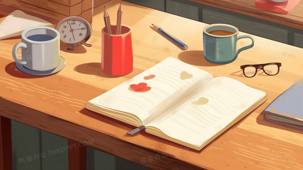 本作品内容为卡通书桌桌面插画, 格式为 jpg, 大小4 MB, 图片尺寸为2912 x 1632, 源文件无水印, 欢迎使用熊猫办公。 如认为平台内容涉嫌侵权,可通过邮件:tousu@tukuppt.com提出书面通知,我们将及时处理。