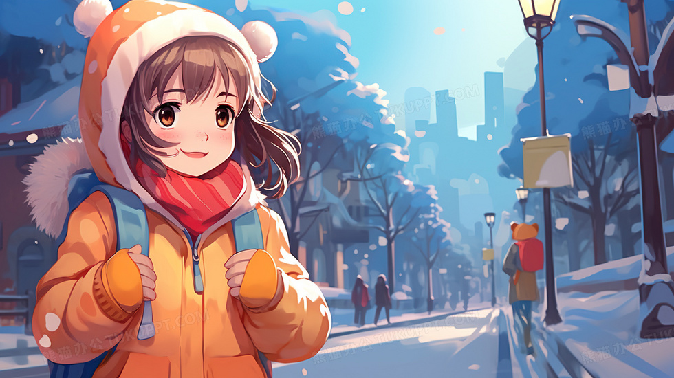 本作品内容为冬天雪地穿羽绒服的女孩插画, 格式为 jpg, 大小5 MB, 图片尺寸为2912 x 1632, 源文件无水印, 欢迎使用熊猫办公。 如认为平台内容涉嫌侵权,可通过邮件:tousu@tukuppt.com提出书面通知,我们将及时处理。