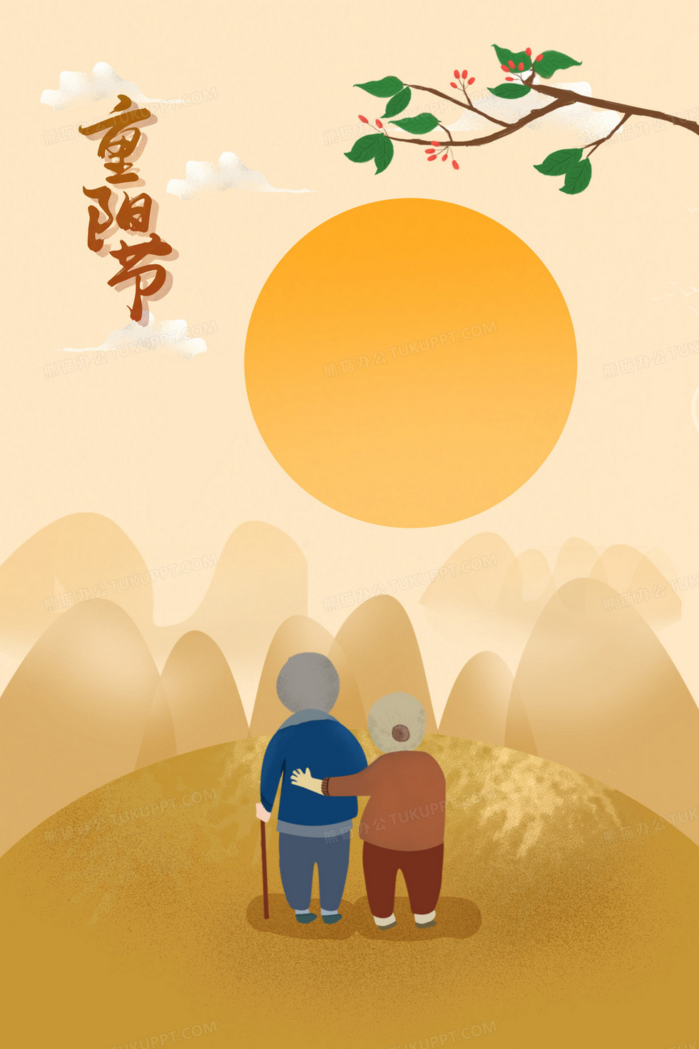 本作品内容为重阳节老人互相搀扶登山插茱萸插画, 格式为 psd, 大小25 MB, 请使用软件PhotoShop(CC)打开, 源文件无水印, 欢迎使用熊猫办公。 如认为平台内容涉嫌侵权,可通过邮件:tousu@tukuppt.com提出书面通知,我们将及时处理。