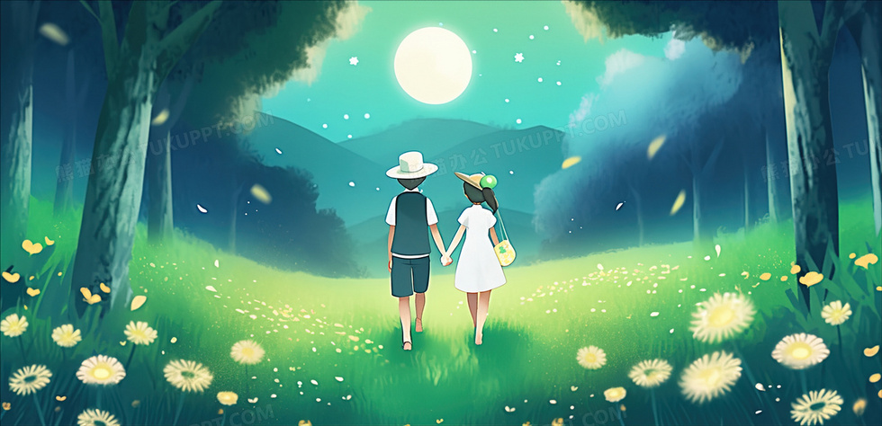本作品内容为梦幻的春天一对热恋情侣在散步创意插画, 格式为 jpg, 大小2 MB, 图片尺寸为2912 x 1408, 源文件无水印, 欢迎使用熊猫办公。 如认为平台内容涉嫌侵权,可通过邮件:tousu@tukuppt.com提出书面通知,我们将及时处理。