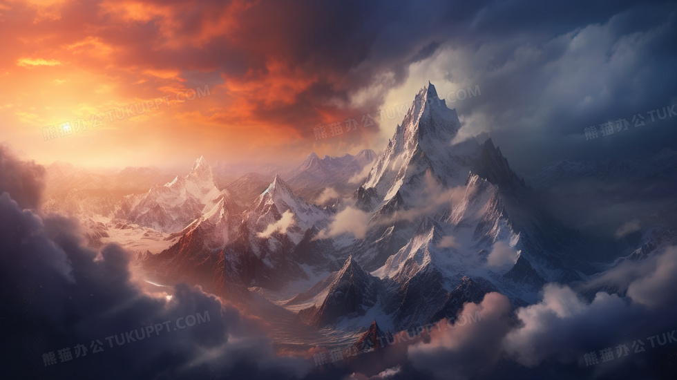 本作品内容为云中山峰唯美风景插画, 格式为 jpg, 大小5 MB, 图片尺寸为2912 x 1632, 源文件无水印, 欢迎使用熊猫办公。 如认为平台内容涉嫌侵权,可通过邮件:tousu@tukuppt.com提出书面通知,我们将及时处理。