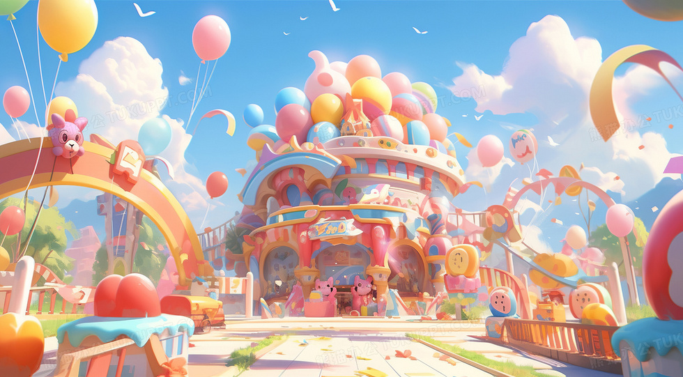 本作品内容为卡通儿童游乐园创意插画, 格式为 jpg, 大小3 MB, 图片尺寸为2912 x 1608, 源文件无水印, 欢迎使用熊猫办公。 如认为平台内容涉嫌侵权,可通过邮件:tousu@tukuppt.com提出书面通知,我们将及时处理。
