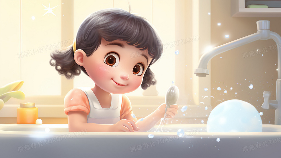 本作品内容为小女孩在浴室里玩耍洗手插画, 格式为 jpg, 大小4 MB, 图片尺寸为2912 x 1632, 源文件无水印, 欢迎使用熊猫办公。 如认为平台内容涉嫌侵权,可通过邮件:tousu@tukuppt.com提出书面通知,我们将及时处理。