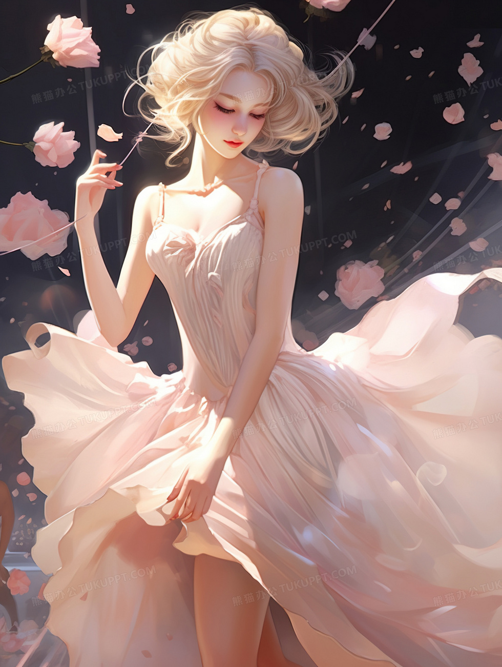 唯美梦幻女孩穿芭蕾舞服跳舞插画
