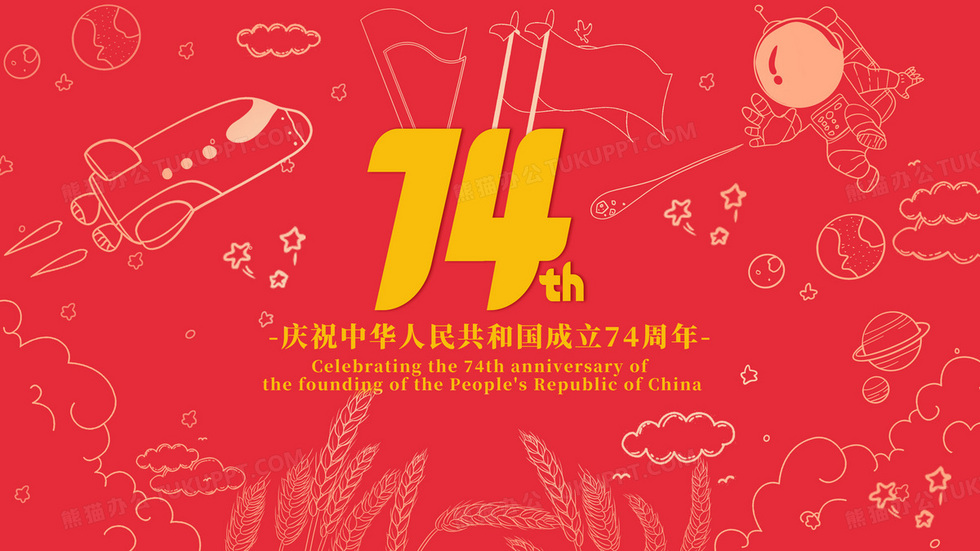 本作品内容为庆祝中华人民共和国成立74周年, 格式为 psd, 大小21 MB, 请使用软件PhotoShop(CC)打开, 源文件无水印, 欢迎使用熊猫办公。 如认为平台内容涉嫌侵权,可通过邮件:tousu@tukuppt.com提出书面通知,我们将及时处理。