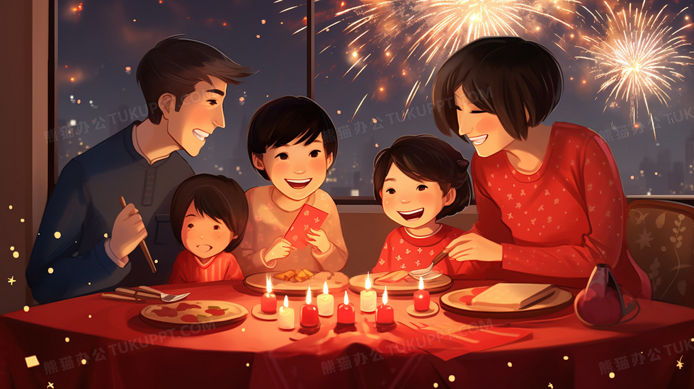 本作品内容为全体家庭成员庆祝中国农历新年插画, 格式为 jpg, 大小5 MB, 图片尺寸为2912 x 1632, 源文件无水印, 欢迎使用熊猫办公。 如认为平台内容涉嫌侵权,可通过邮件:tousu@tukuppt.com提出书面通知,我们将及时处理。