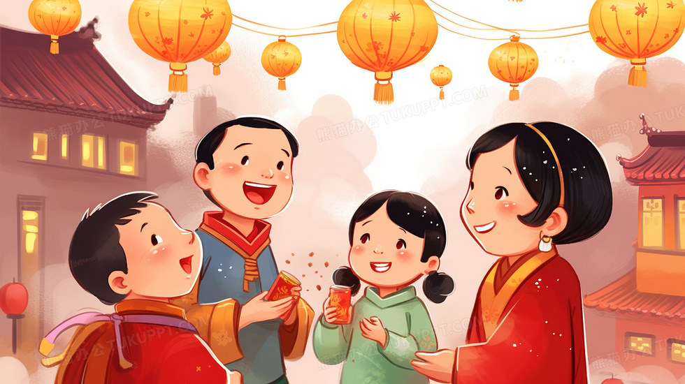 本作品内容为家庭成员参加春节庆典插画, 格式为 jpg, 大小5 MB, 图片尺寸为2912 x 1632, 源文件无水印, 欢迎使用熊猫办公。 如认为平台内容涉嫌侵权,可通过邮件:tousu@tukuppt.com提出书面通知,我们将及时处理。
