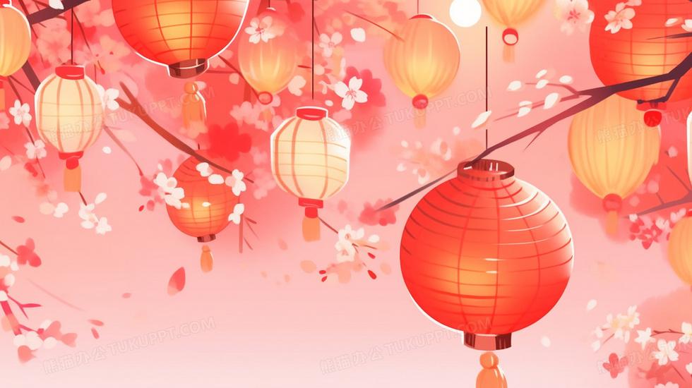 本作品内容为春节鲜花彩灯灯笼装饰插画, 格式为 jpg, 大小2 MB, 图片尺寸为1456 x 816, 源文件无水印, 欢迎使用熊猫办公。 如认为平台内容涉嫌侵权,可通过邮件:tousu@tukuppt.com提出书面通知,我们将及时处理。