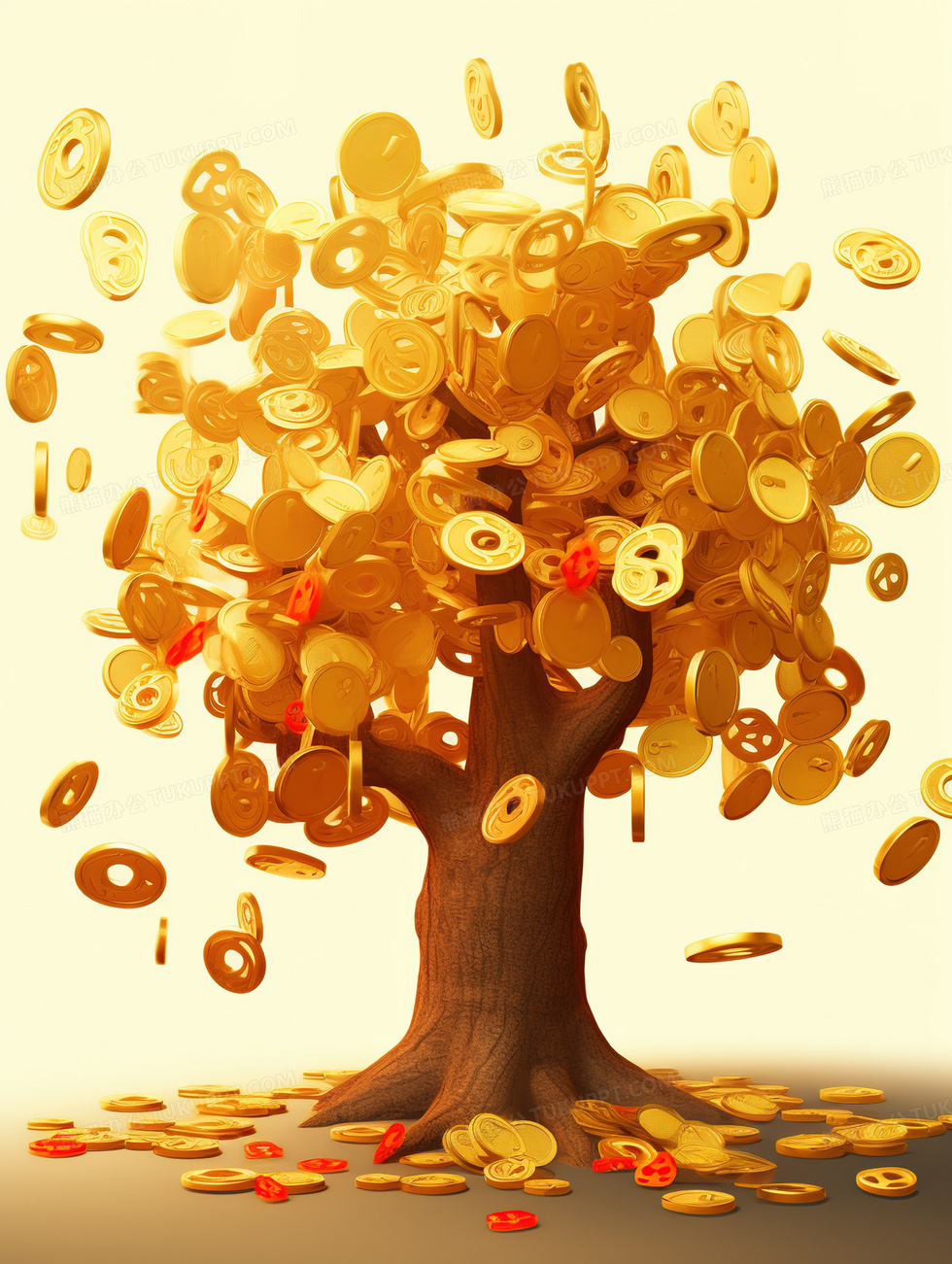 本作品内容为一棵金光闪闪的摇钱树插画, 格式为 jpg, 大小6 MB, 图片尺寸为1856 x 2464, 源文件无水印, 欢迎使用熊猫办公。 如认为平台内容涉嫌侵权,可通过邮件:tousu@tukuppt.com提出书面通知,我们将及时处理。