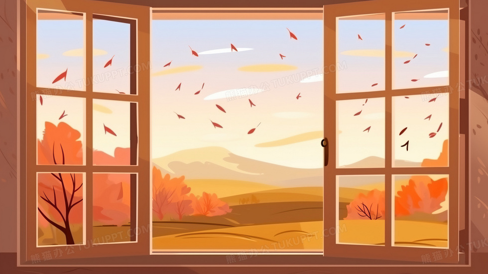本作品内容为秋天窗外唯美风景文艺卡通插画, 格式为 jpg, 大小5 MB, 图片尺寸为2912 x 1632, 源文件无水印, 欢迎使用熊猫办公。 如认为平台内容涉嫌侵权,可通过邮件:tousu@tukuppt.com提出书面通知,我们将及时处理。