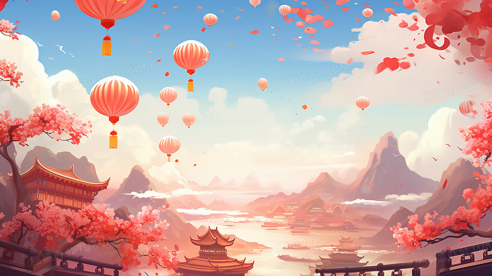 本作品内容为红色古典中国风建筑风景插画, 格式为 jpg, 大小5 MB, 图片尺寸为2912 x 1632, 源文件无水印, 欢迎使用熊猫办公。 如认为平台内容涉嫌侵权,可通过邮件:tousu@tukuppt.com提出书面通知,我们将及时处理。