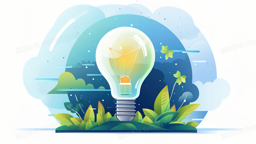 本作品内容为绿色清洁能源灯泡电能插画, 格式为 jpg, 大小4 MB, 图片尺寸为2912 x 1632, 源文件无水印, 欢迎使用熊猫办公。 如认为平台内容涉嫌侵权,可通过邮件:tousu@tukuppt.com提出书面通知,我们将及时处理。