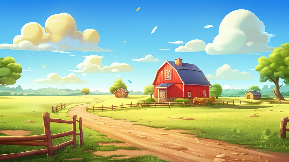 本作品内容为村庄农舍旁大片的草地牧场风景插画, 格式为 jpg, 大小5 MB, 图片尺寸为2912 x 1632, 源文件无水印, 欢迎使用熊猫办公。 如认为平台内容涉嫌侵权,可通过邮件:tousu@tukuppt.com提出书面通知,我们将及时处理。