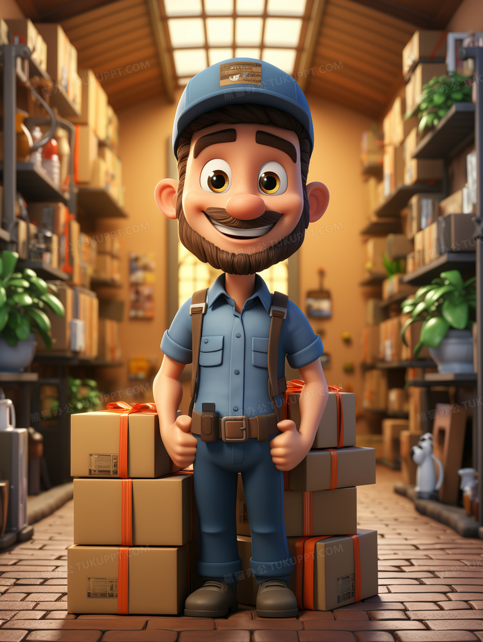 本作品内容为3D卡通一个快递员拿着快递插画, 格式为 jpg, 大小5 MB, 图片尺寸为1856 x 2464, 源文件无水印, 欢迎使用熊猫办公。 如认为平台内容涉嫌侵权,可通过邮件:tousu@tukuppt.com提出书面通知,我们将及时处理。