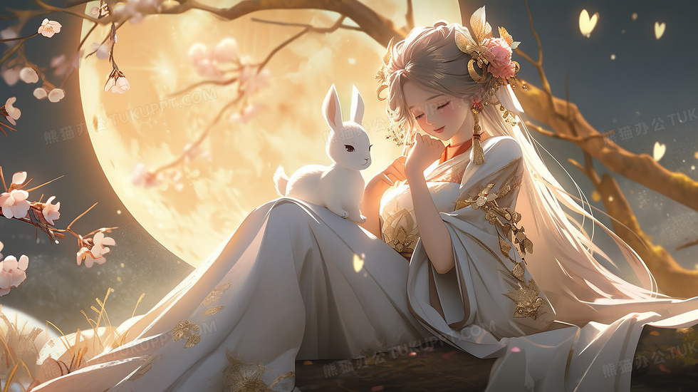 本作品内容为嫦娥仙子和玉兔中秋节创意插画, 格式为 jpg, 大小6 MB, 图片尺寸为2912 x 1632, 源文件无水印, 欢迎使用熊猫办公。 如认为平台内容涉嫌侵权,可通过邮件:tousu@tukuppt.com提出书面通知,我们将及时处理。