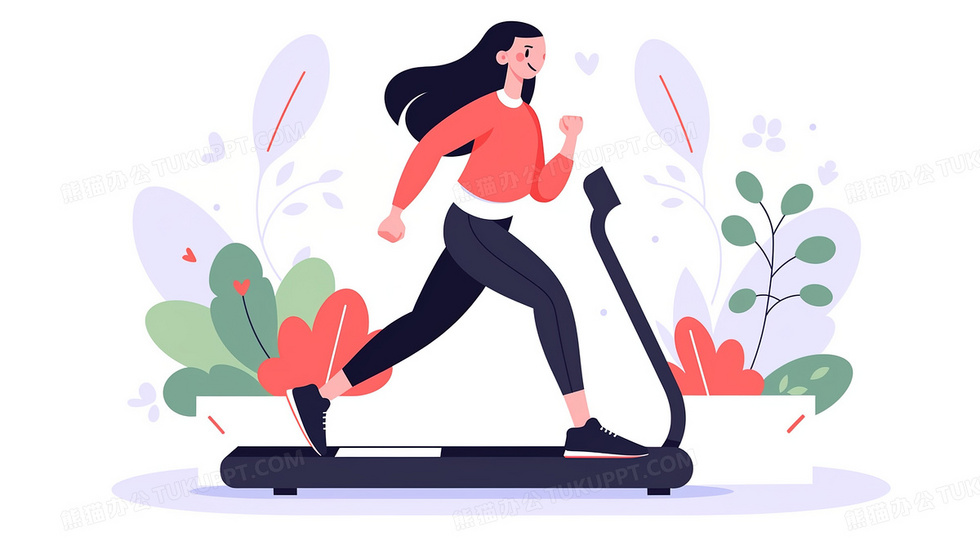 本作品内容为在跑步机上运动的女孩平面简约插画, 格式为 jpg, 大小3 MB, 图片尺寸为2912 x 1632, 源文件无水印, 欢迎使用熊猫办公。 如认为平台内容涉嫌侵权,可通过邮件:tousu@tukuppt.com提出书面通知,我们将及时处理。