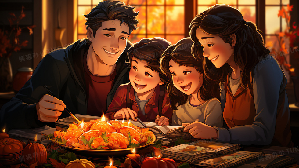 本作品内容为感恩节家庭聚餐团聚插画, 格式为 jpg, 大小6 MB, 图片尺寸为2912 x 1632, 源文件无水印, 欢迎使用熊猫办公。 如认为平台内容涉嫌侵权,可通过邮件:tousu@tukuppt.com提出书面通知,我们将及时处理。
