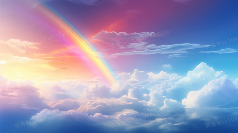 本作品内容为美丽彩虹云朵唯美插画, 格式为 jpg, 大小4 MB, 图片尺寸为2912 x 1632, 源文件无水印, 欢迎使用熊猫办公。 如认为平台内容涉嫌侵权,可通过邮件:tousu@tukuppt.com提出书面通知,我们将及时处理。